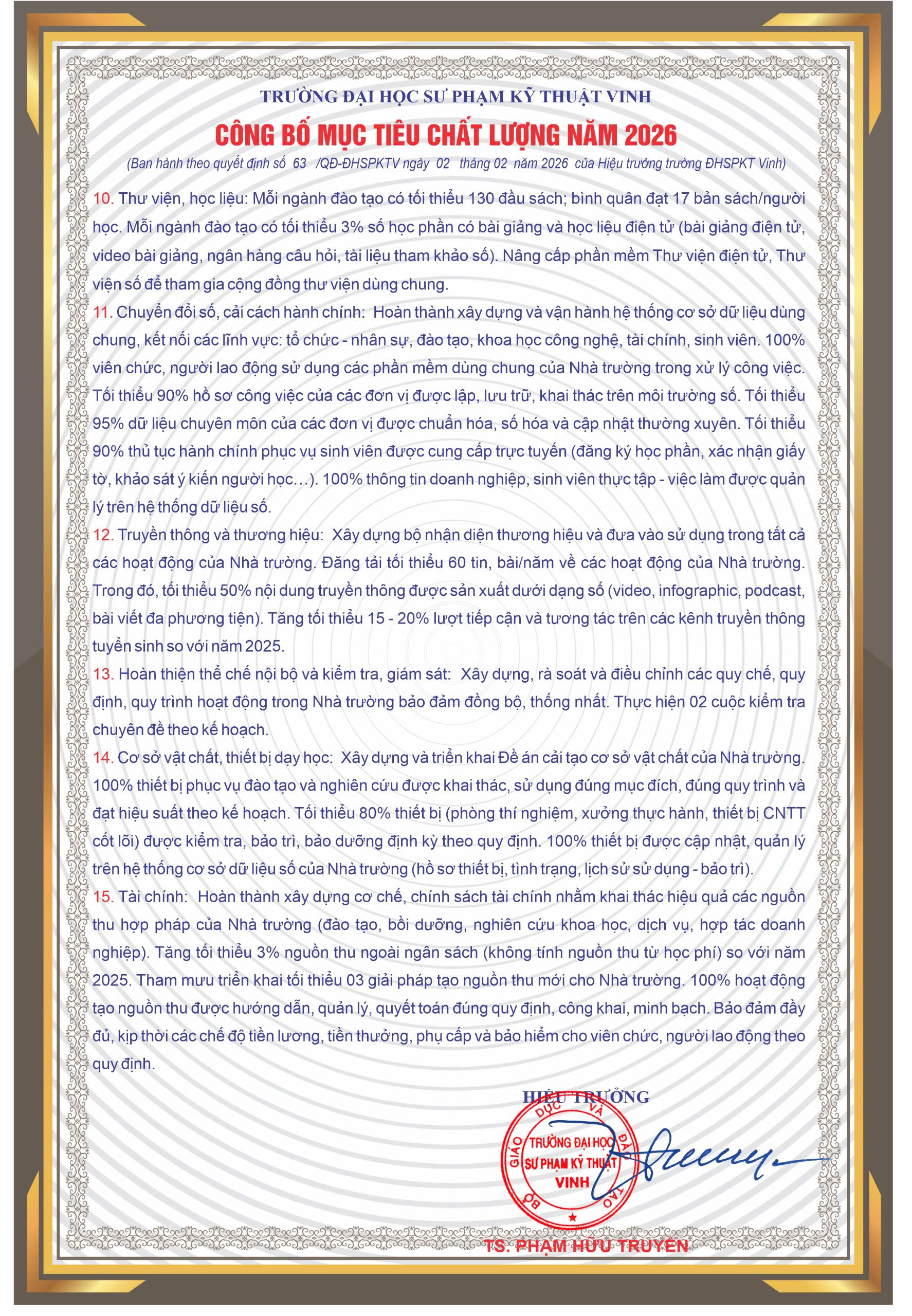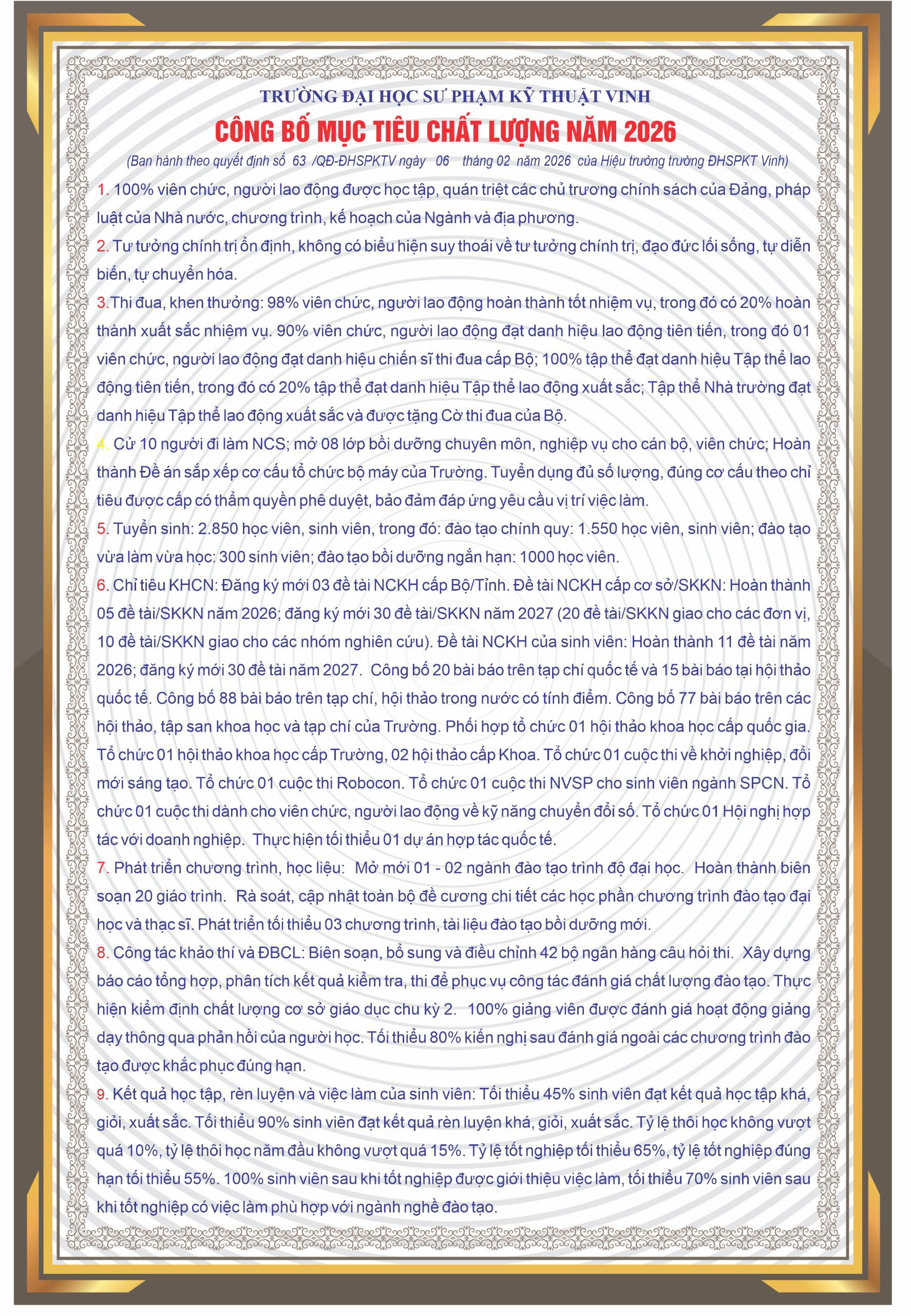 » Công bố Mục tiêu chất lượng năm 2026
