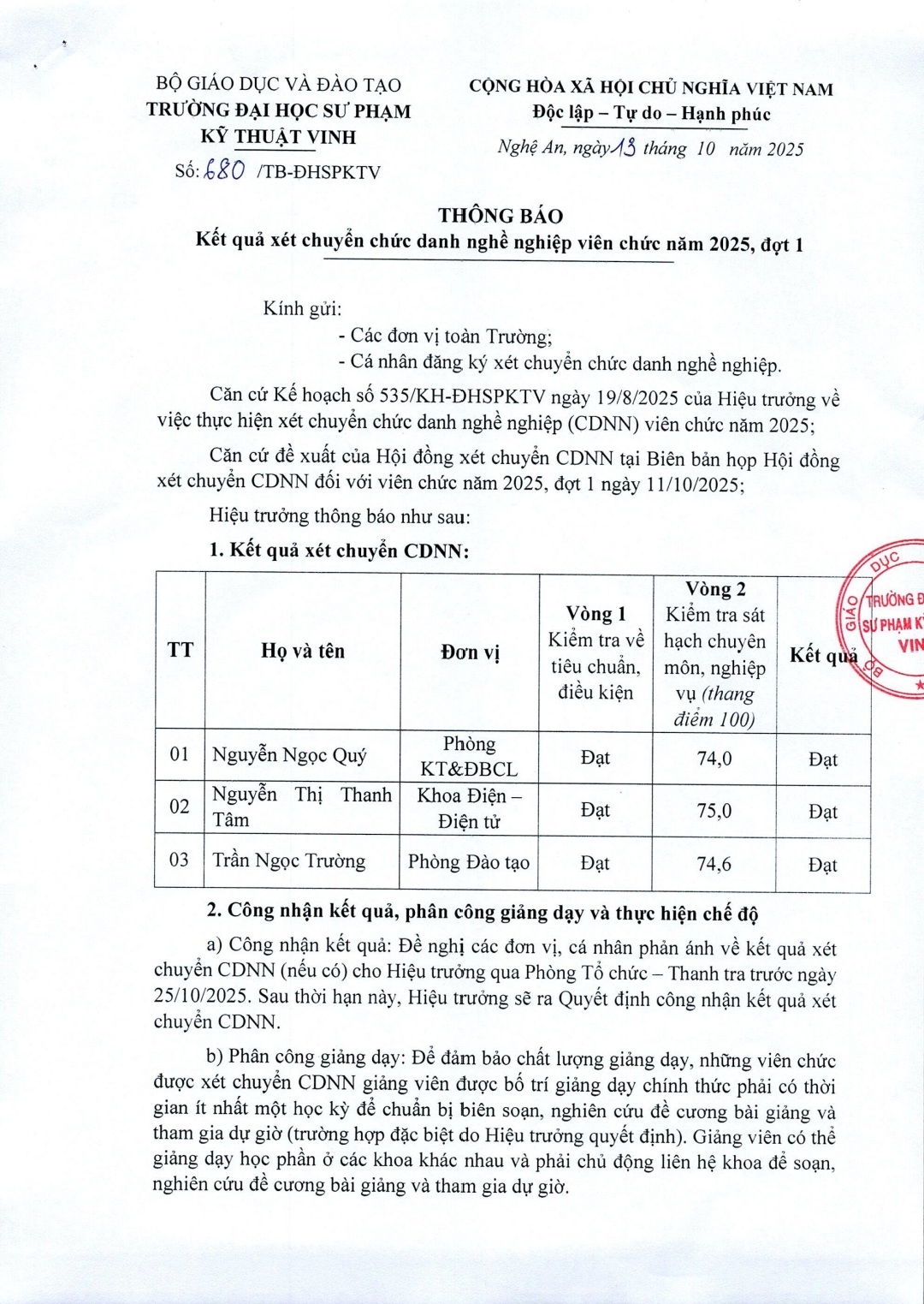 Kết quả chuyển chức danh nghề nghiệp viên chức năm 2025