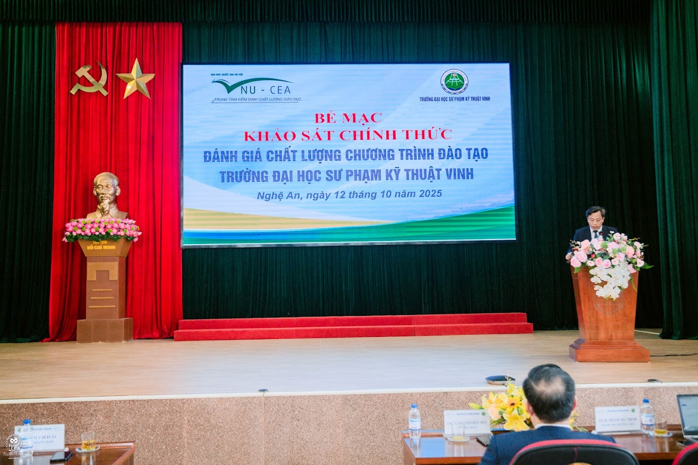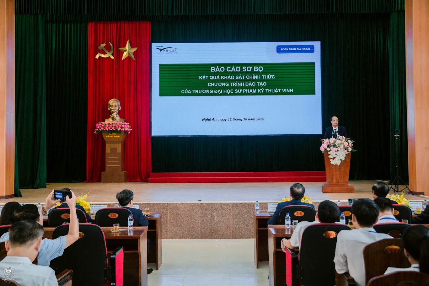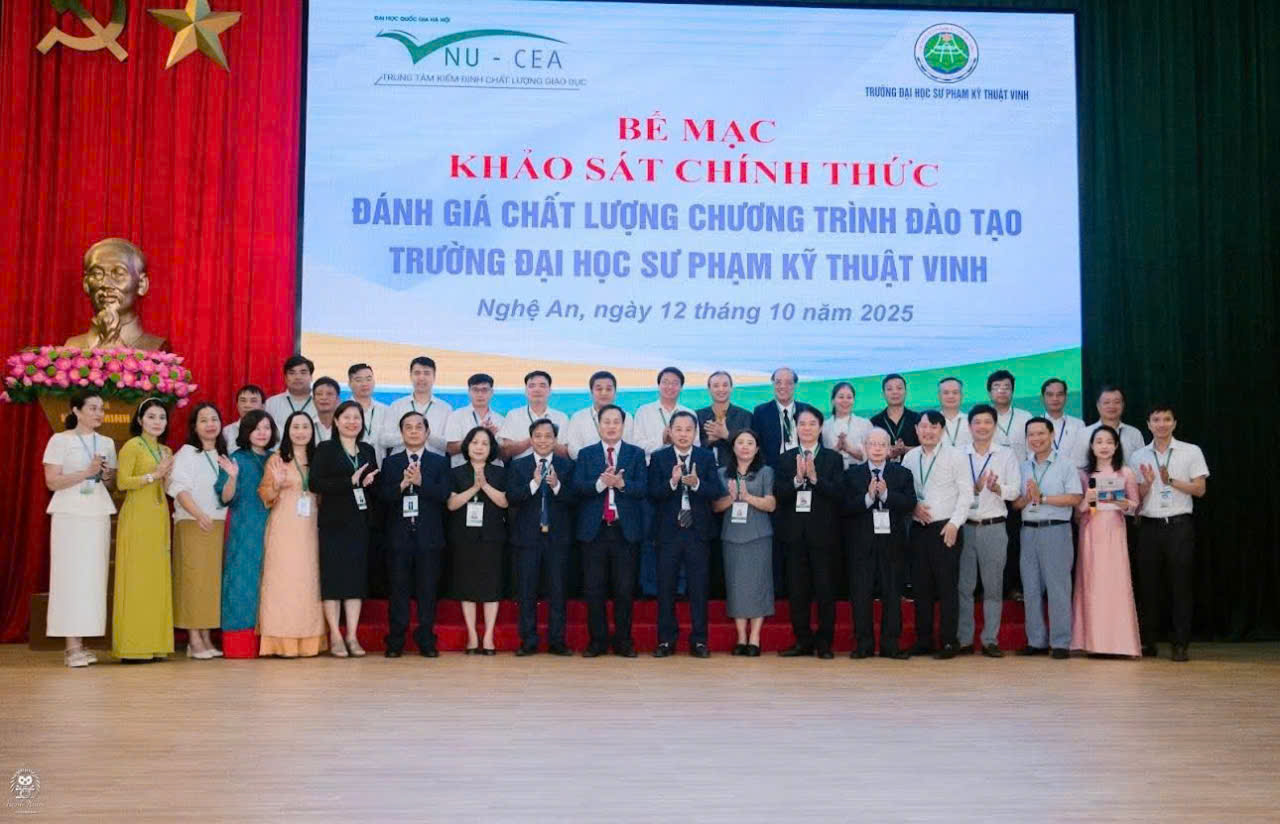 Chiều ngày 12/10/2025, Trường Đại học Sư phạm Kỹ thuật Vinh đã long trọng tổ chức Lễ Bế mạc đợt Khảo sát chính thức 05 chương trình đào tạo: Quản trị kinh doanh, Công nghệ Kỹ thuật Máy tính, Công nghệ kỹ thuật cơ khí, Công nghệ kỹ thuật Điều khiển và Tự động hóa và Sư phạm Kỹ thuật Ô tô.