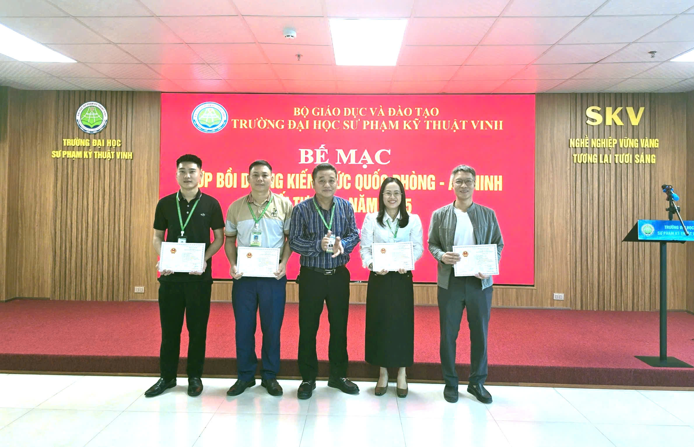 Ngày 24/11/2025, Lễ bế giảng Lớp bồi dưỡng kiến thức Quốc phòng-An ninh đối tượng 4 cho viên chức Trường Đại học Sư phạm kỹ thuật Vinh đã được tổ chức . Đến dự buổi lễ bế giảng lớp học có TS. Thái Anh Tuấn – Bí thư Đảng ủy – Chủ tịch Hội đồng trường; TS. Phạm Hữu Truyền – Hiệu trưởng; TS. Thái Hữu Nguyên - Phó Hiệu trưởng Nhà trường cùng lãnh đạo các đơn vị và các cán bộ viên chức, giảng viên các báo cáo viên và học viên.