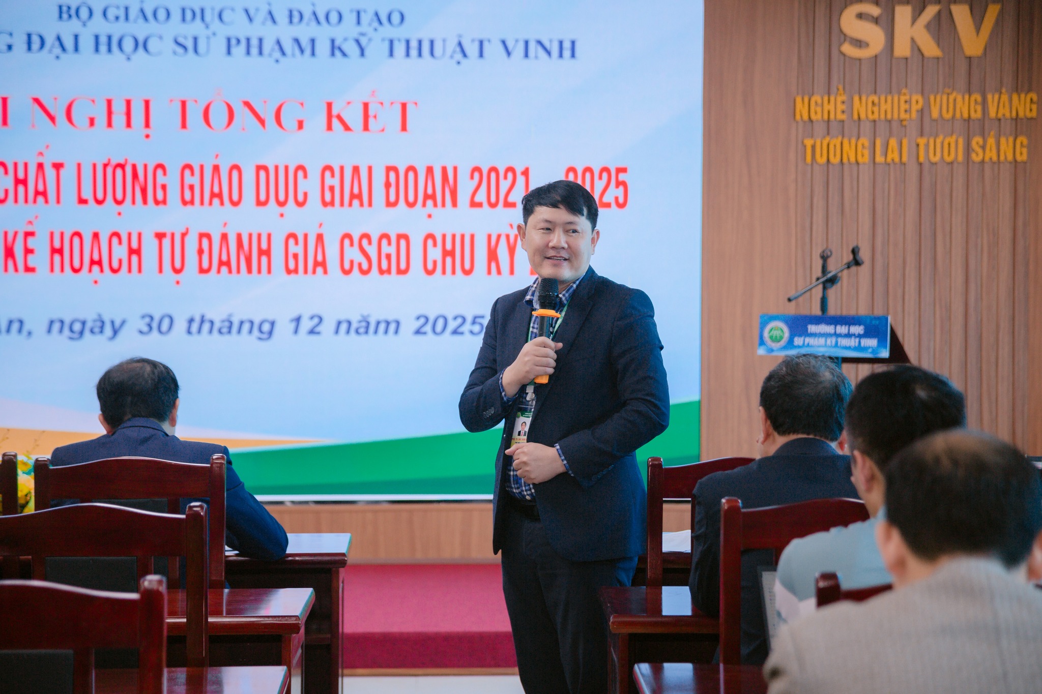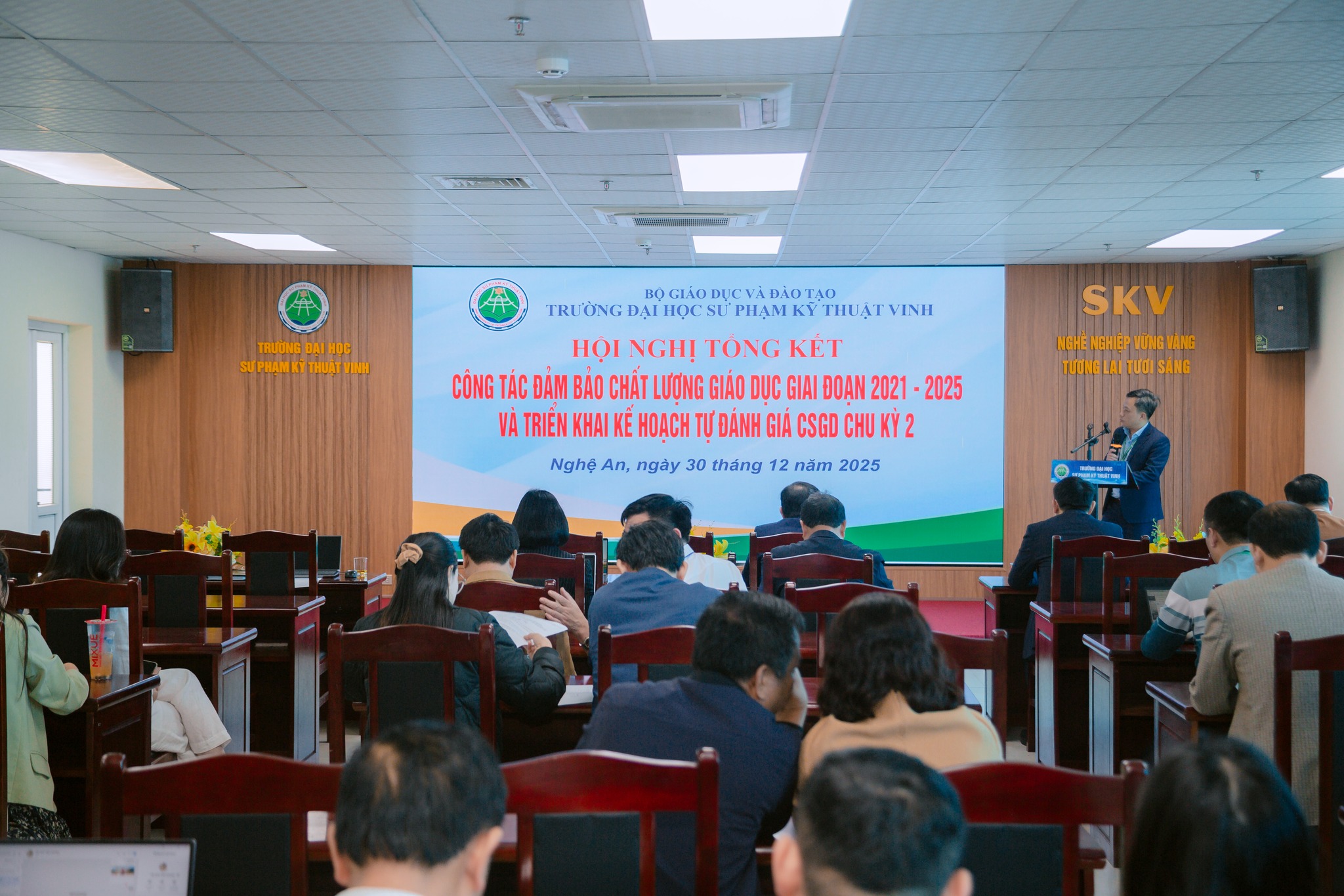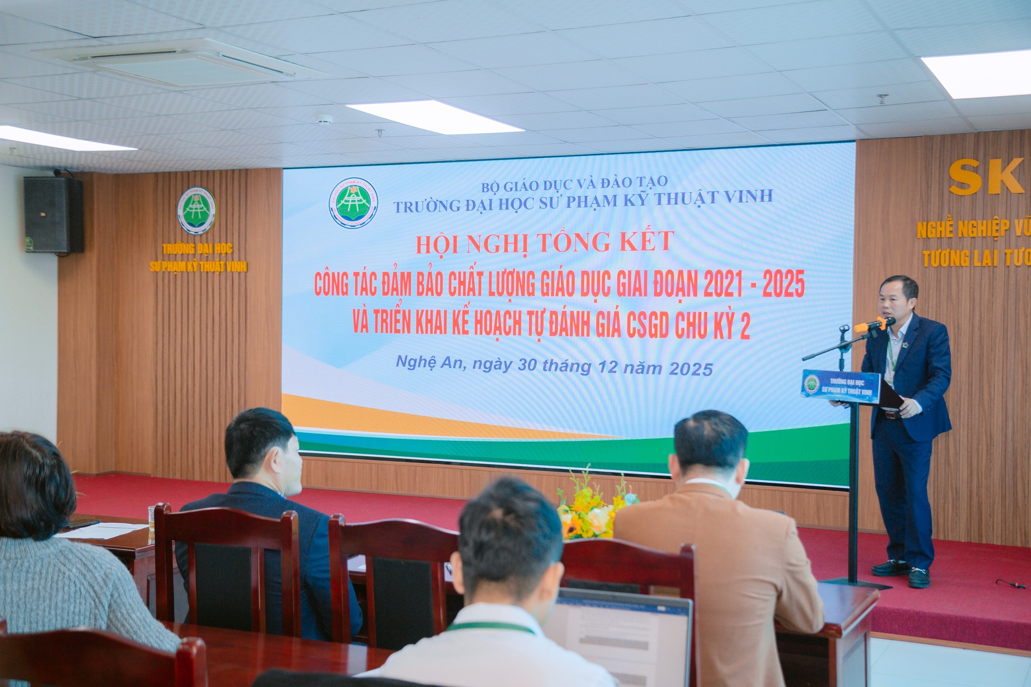 Chiều ngày 30/12/2025, Trường Đại học Sư phạm Kỹ thuật Vinh đã tổ chức Hội nghị tổng kết hoạt động Đảm bảo chất lượng (ĐBCL) giai đoạn 2021–2025 và triển khai kế hoạch tự đánh giá cơ sở giáo dục (CSGD) chu kỳ 2.