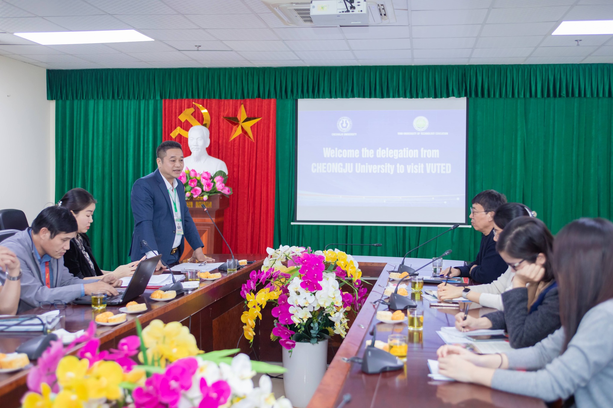 Chiều ngày 18.12.2025, Trường Đại học Sư phạm Kỹ thuật Vinh đã có buổi đón tiếp và làm việc chính thức với đoàn công tác đến từ Trường Đại học Cheongju – Hàn Quốc. Buổi làm việc đã mở ra nhiều cơ hội đột phá trong đào tạo, nghiên cứu và trao đổi sinh viên giữa hai nhà trường.