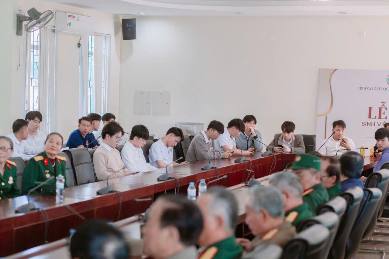 Về phía Nhà trường có thầy cô giáo trưởng, phó khoa, phòng, trung tâm, giảng viên, sinh viên nhà trường và hơn 150 lưu sinh viên Lào.